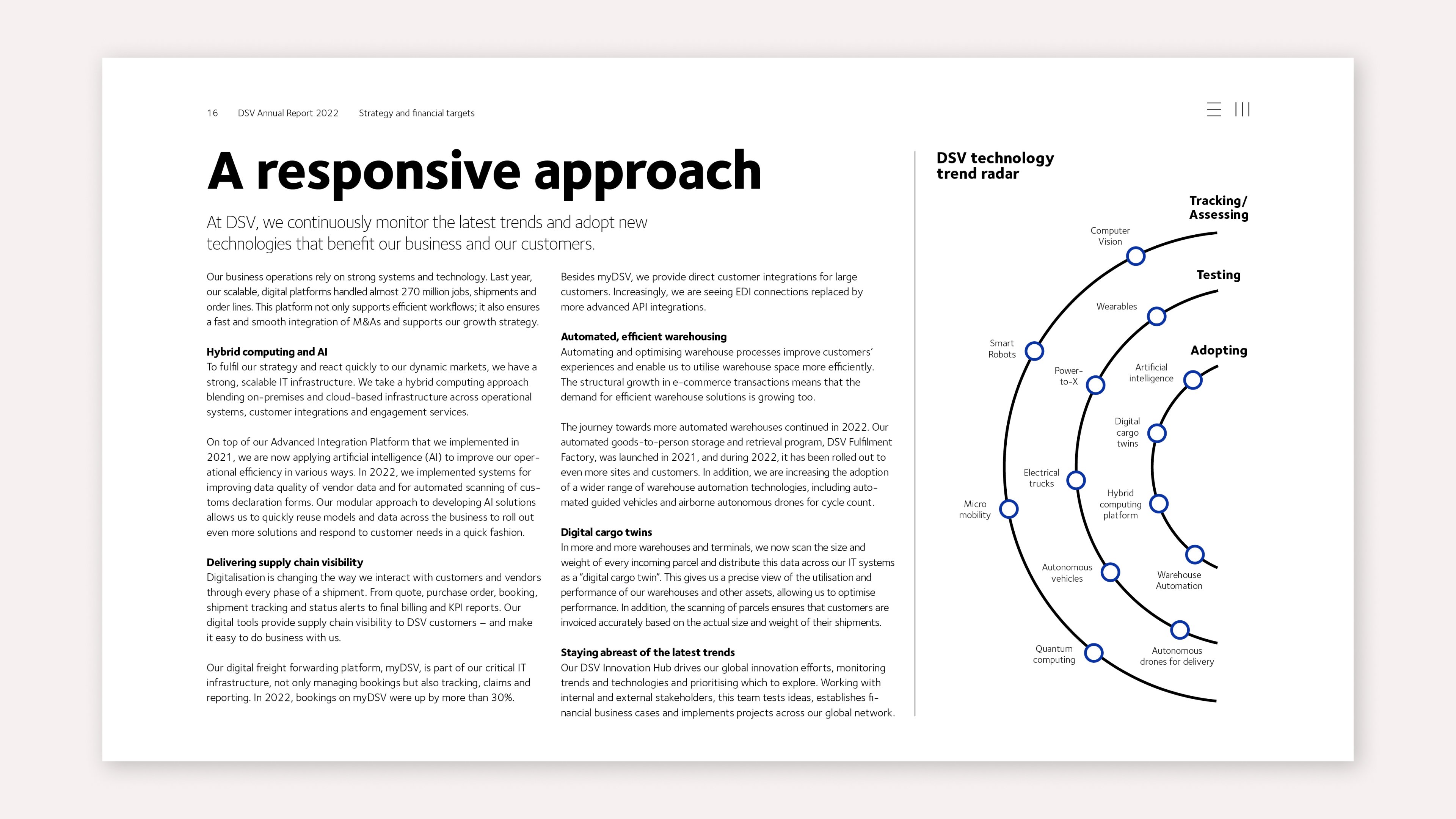 DSV has a responsive approach to new trends and challenges with quick adaption of new technologies.