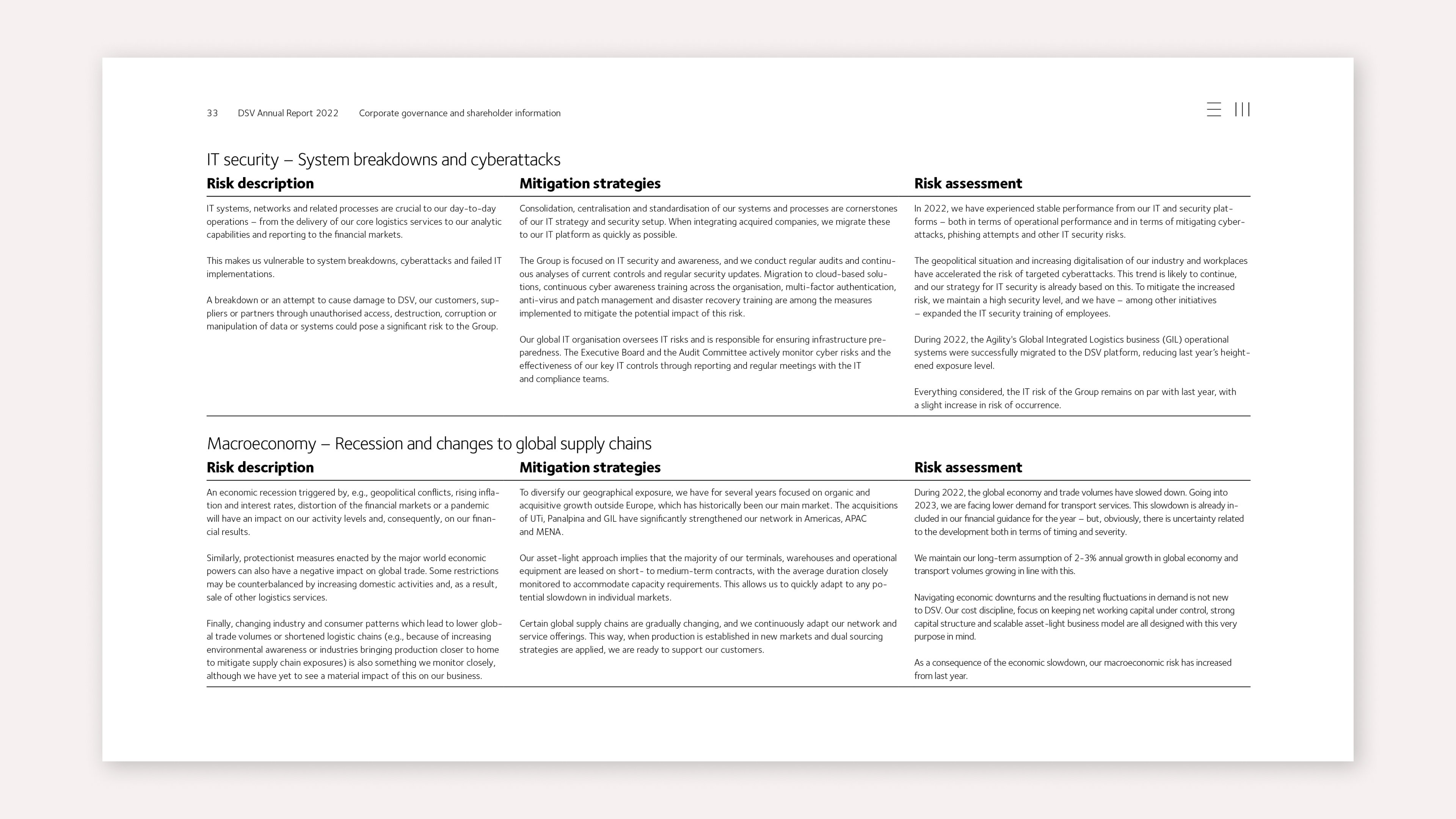 One annual report that has managed to proactively put the company’s exposures and possibilities on display is DSV.